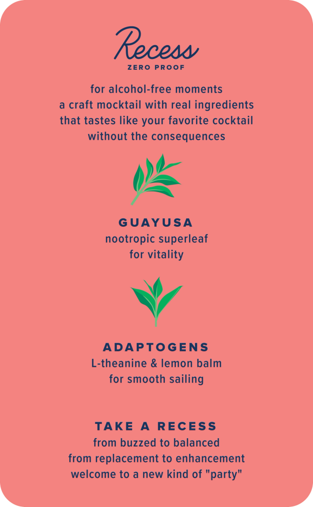 made with real ingredients, uplifting guayusa & balancing adaptogens, Recess Zero Proof is the perfect alcohol alternative